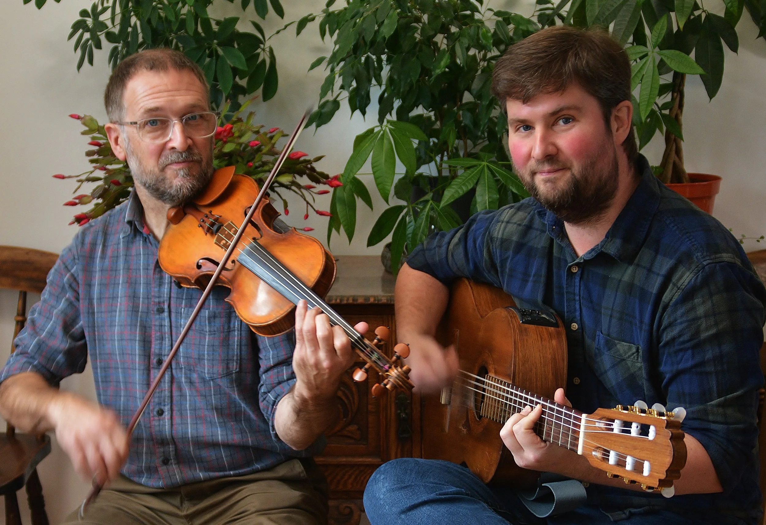 Mitchell & Kirby seamlessly match and weave the traditional with their own original compositions together to create tune sets which are great to listen as well as dance to. They are multi-instrumentalists but primarily use the classic combination of fiddle and guitar for tunes while adding in whistle and two guitars to enhance songs alongside the tunes for concerts and ceilidhs which creates a great atmosphere for public and private events.